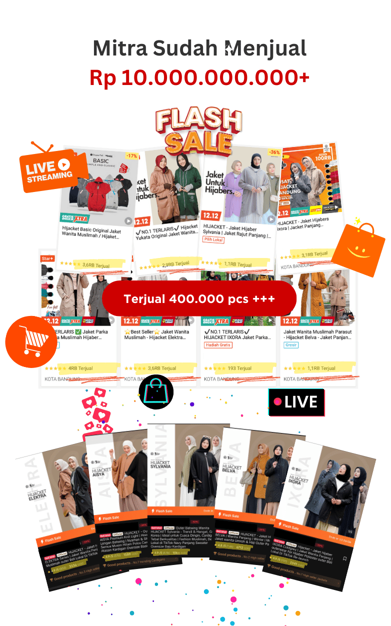 Hijacket® tidak hanya menyediakan produk berkualitas untuk dijual, tetapi juga pelatihan dan bimbingan yang komprehensif. Mulai dari teknik pemasaran digital hingga strategi penjualan dan manajemen stok, Hijacket® memberikan semua yang Anda butuhkan untuk sukses dalam bisnis. Kami juga menyediakan materi promosi yang menarik dan up-to-date untuk membantu Anda menarik lebih banyak pelanggan. Tabarakallah, bersama Hijacket®, Anda memiliki semua yang Anda butuhkan untuk menjalankan bisnis yang sukses.